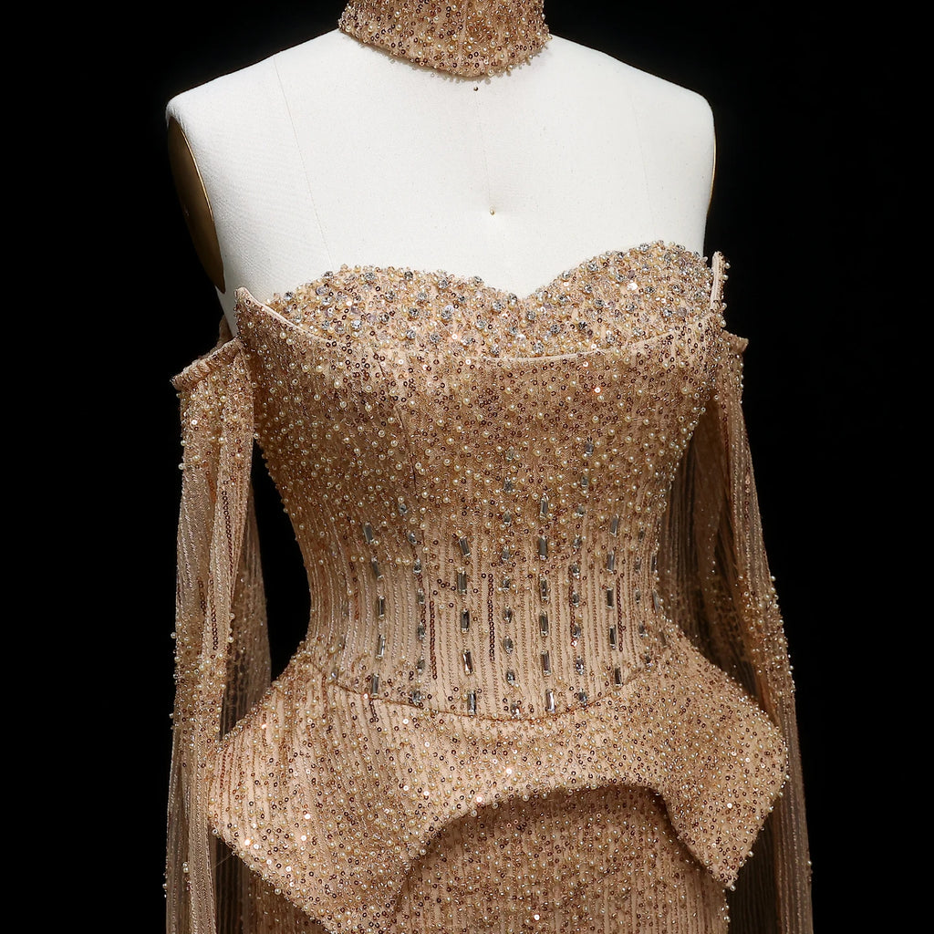 Comprimento dos vestidos: Comprimento do chãoComprimento da manga (cm): Completo