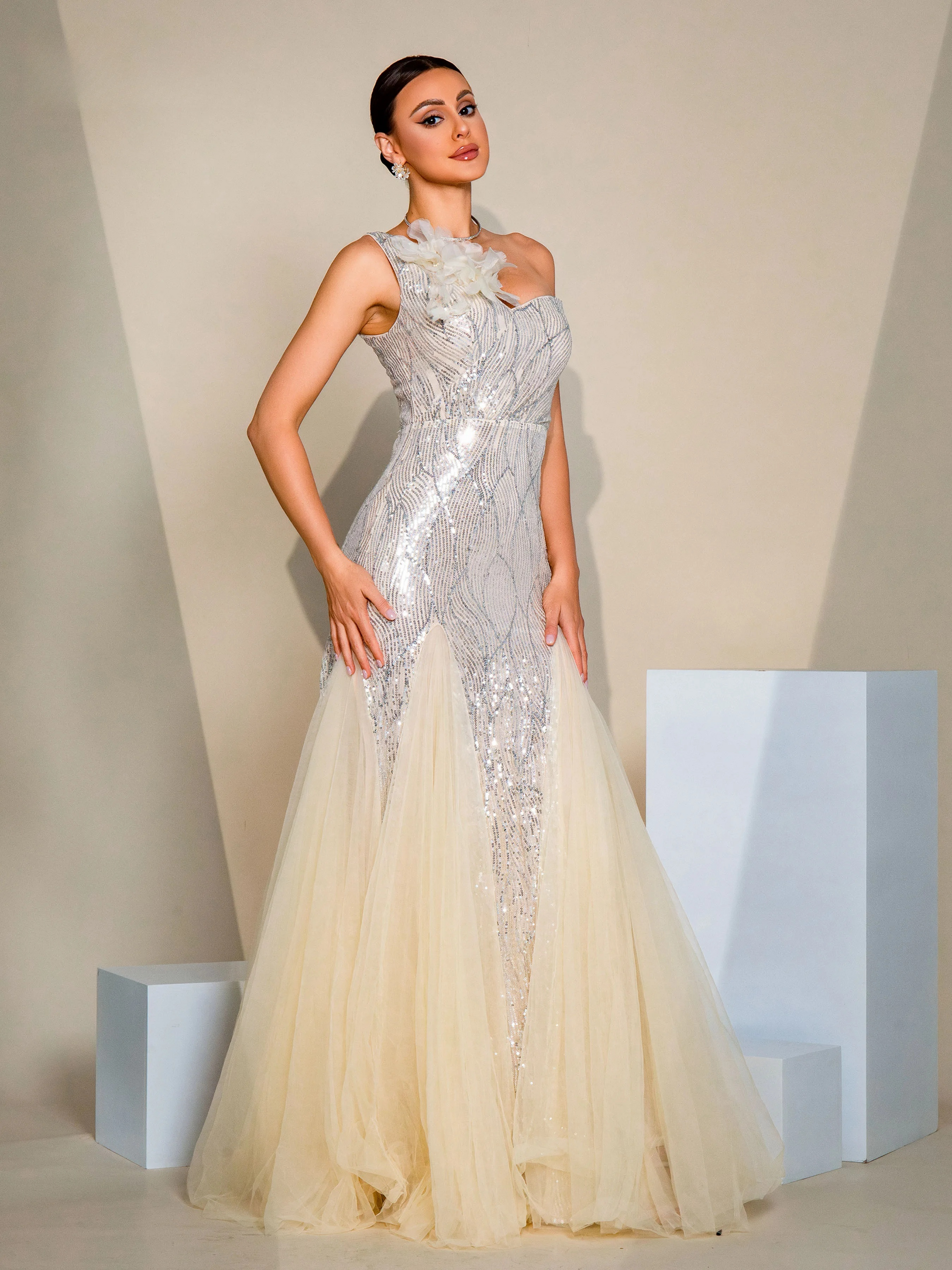 Decoração: LantejoulasComprimento da manga (cm): sem mangasSilhueta: Trompete / Sereia